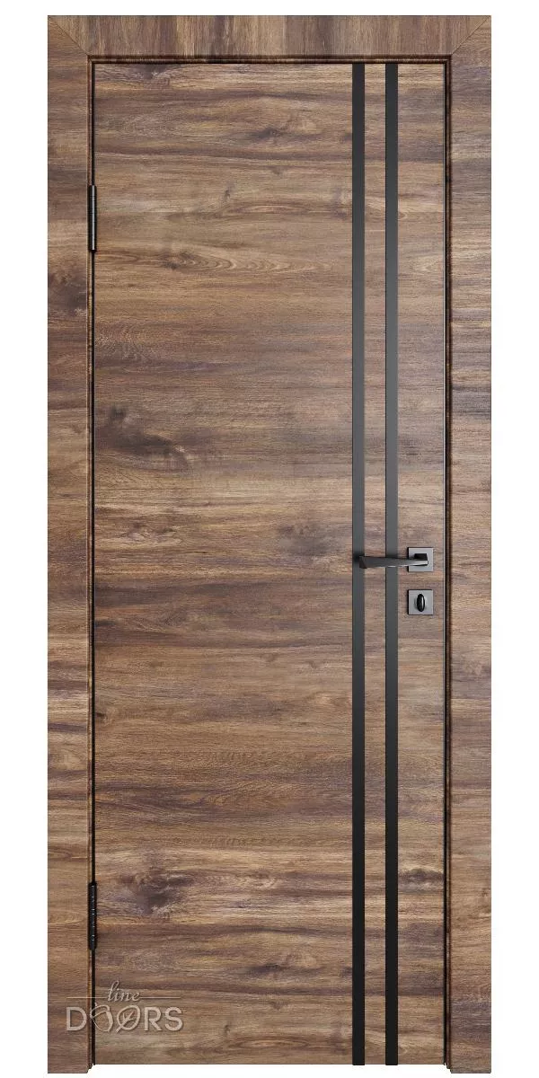 DG-518 Лофт темный с черными молдингами - межкомнатная дверь с алюминиевой кромкой по вертикальным торцам полотна и предустановленным магнитным замком.
