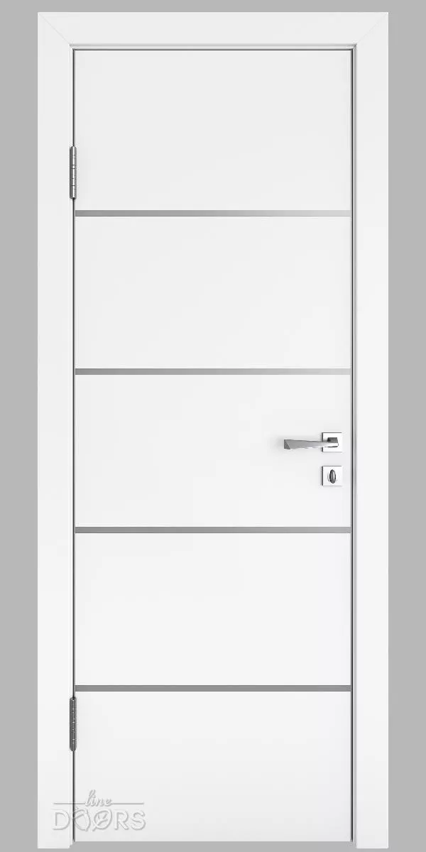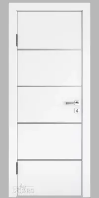 DG-505 Белый бархат с декоративными вставками под алюминий - межкомнатная дверь с алюминиевой кромкой по вертикальным торцам полотна и предустановленным магнитным замком.