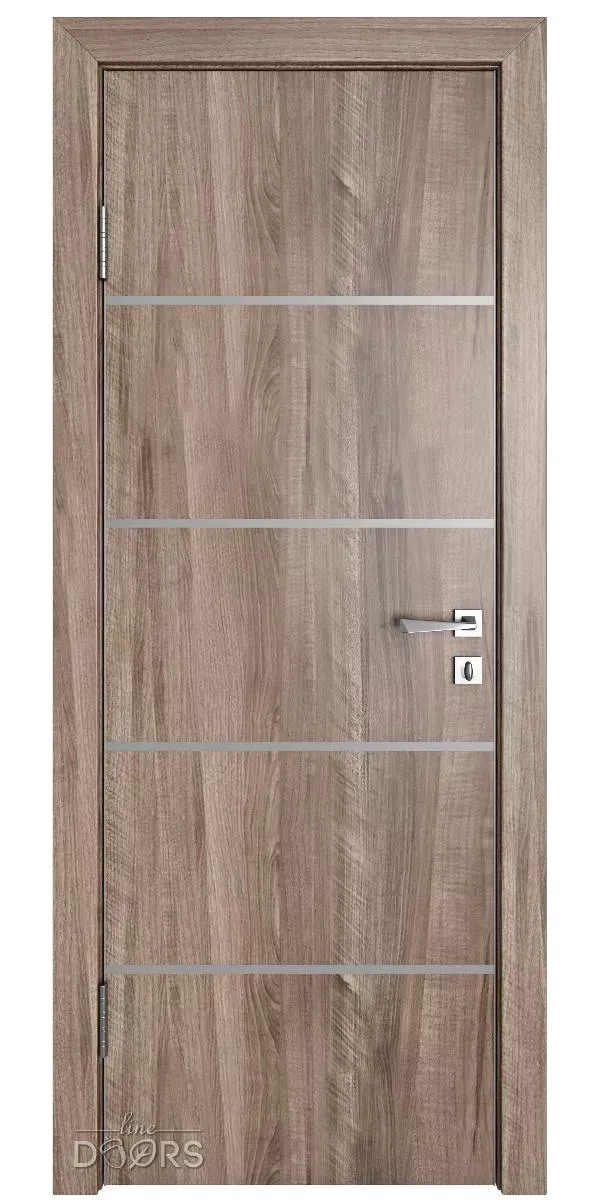 Стильная и современная межкомнатная дверь DG-505 (ДГ-505) Орех седой светлый с декоративными молдингами серебряного цвета предназначена для установки в жилых и общественных помещениях, таких как квартира, частный дом или офис.