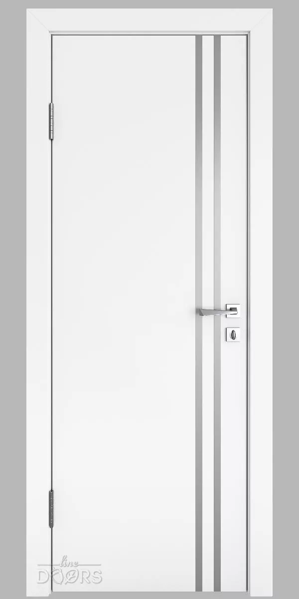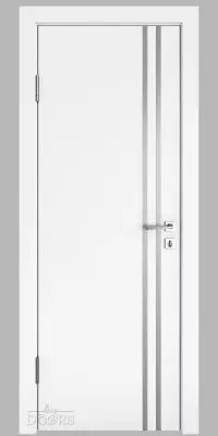 DG-506 Белый бархат с декоративными вставками под алюминий - межкомнатная дверь с алюминиевой кромкой по вертикальным торцам полотна и предустановленным магнитным замком.