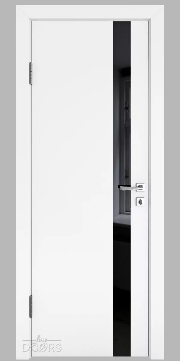 DO-507 Белый бархат с черным стеклом - межкомнатная дверь с алюминиевой кромкой по вертикальным торцам полотна и предустановленным магнитным замком!