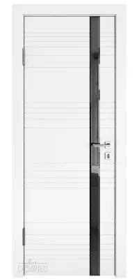DO-514 Белый бархат с черным стеклом - межкомнатная дверь с алюминиевой кромкой по вертикальным торцам полотна и предустановленным магнитным замком!