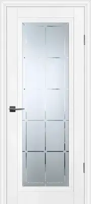 Царговое полотно, выполненное в гладком матовом покрытии, приятным на ощупь, обладающее высокими эксплуатационными характеристиками. Безопасный для здоровья и практичный материал. Бескромочная технология. Сборно-разборная конструкция.###-line-###Полотно комплектуется фигурным багетом и объемной филенкой.