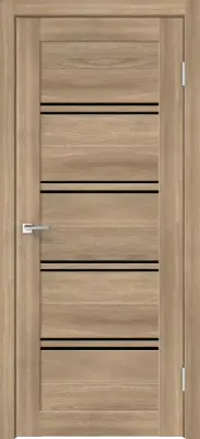 Дверное полотно Экошпон XLINE 4 600х2000 цвет Дуб Европейский горизонт стекло Лакобель черное